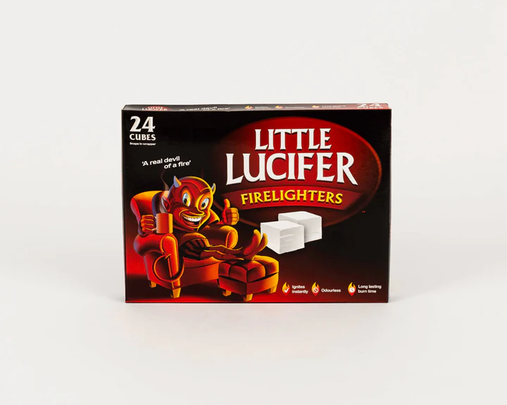 Lucifer Firelighters are a great economical fire lighter solution. Use Lucifer for your fireplace or campfire without the need for paper, kindling or kerosene. The fire lighter block conveniently snaps in the wrapper and comes in packs of 24 cubes.